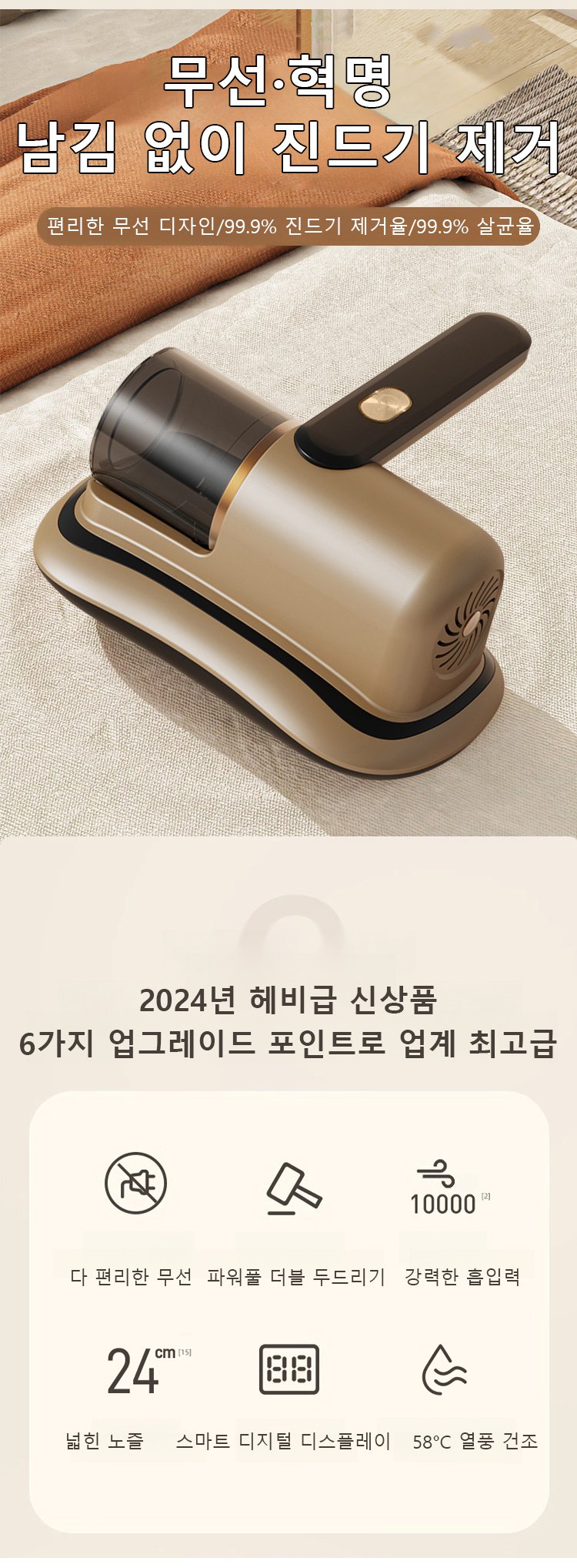 무선 자외선 휴대용 침구 청소기